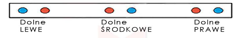 - dolne z prawej lub lewej strony - rozstaw 5 cm