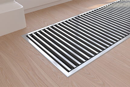 Obramowanie grzejnika kanałowego Verano jest elementem dekoracyjnym i maskującym przestrzeń pomiędzy podłogą a wanną grzejnika kanałowego. Obramowanie jak sama nazwa wskazuje jest obramowaniem wokół grzejnika. Obramowanie grzejnika nie jest elementem, który wchodzi w standardowe wyposażenie grzejnika. Obramowanie zarówno typ L i F można dobrać do grzejnika jako opcja dodatkowa.