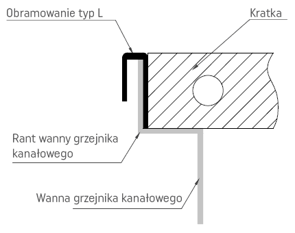 Obramowanie w niektórych przypadkach nie jest zamontowane na wannie grzejnika kanałowego lecz jest jest dostarczane w formie elementów do samodzielnego montażu.Montażu należy dokonać za pomocą silikonowego kleju.