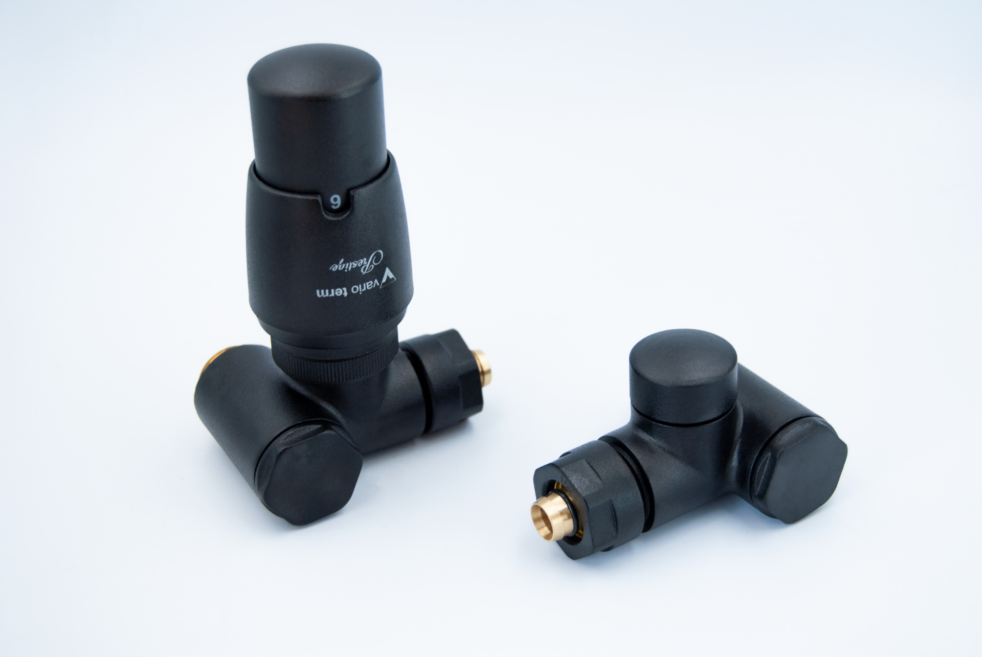 Komplet dwóch zaworów osiowych pod grzałkę elektryczną z głowicą termostatyczną. Zawory są dedykowane do montowania grzałki elektrycznej bez potrzeby stosowania trójnika. Pokrętło regulacyjne ( głowica termostatyczna) zaworów po zamontowaniu są równoległe do płaszczyzny ściany (nie wychodzi na łazienkę).
