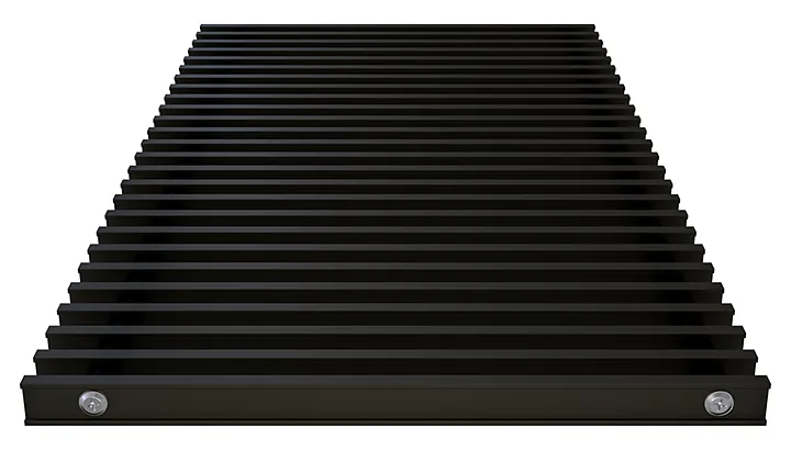 Kratki w grzejniku kanałowym VERANO są szersze od podstawy wanny grzejnika kanałowego o około 24 mm. Długość kratki jest równa długości grzejnika kanałowego.