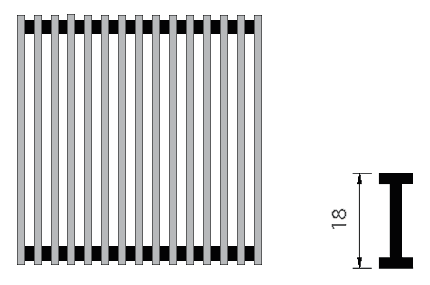 Jak sam nazwa wskazuje szczebel w tym przypadku zbudowany jest z dwóch profili w kształcie litery T połączonych ze sobą. Kratki z dwuteownika wykonane są zarówno z aluminium naturalnego jak i aluminium anodowanego. Zaletą kratek ze szczebli wykonanych w opcji dwuteownika jest dużo większy wybór kolorów. Dostępna kolorystyka w przypadku kratki zrobionej z dwuteownika jest następująca: satyna, stal szlachetna, złoty, czarny.